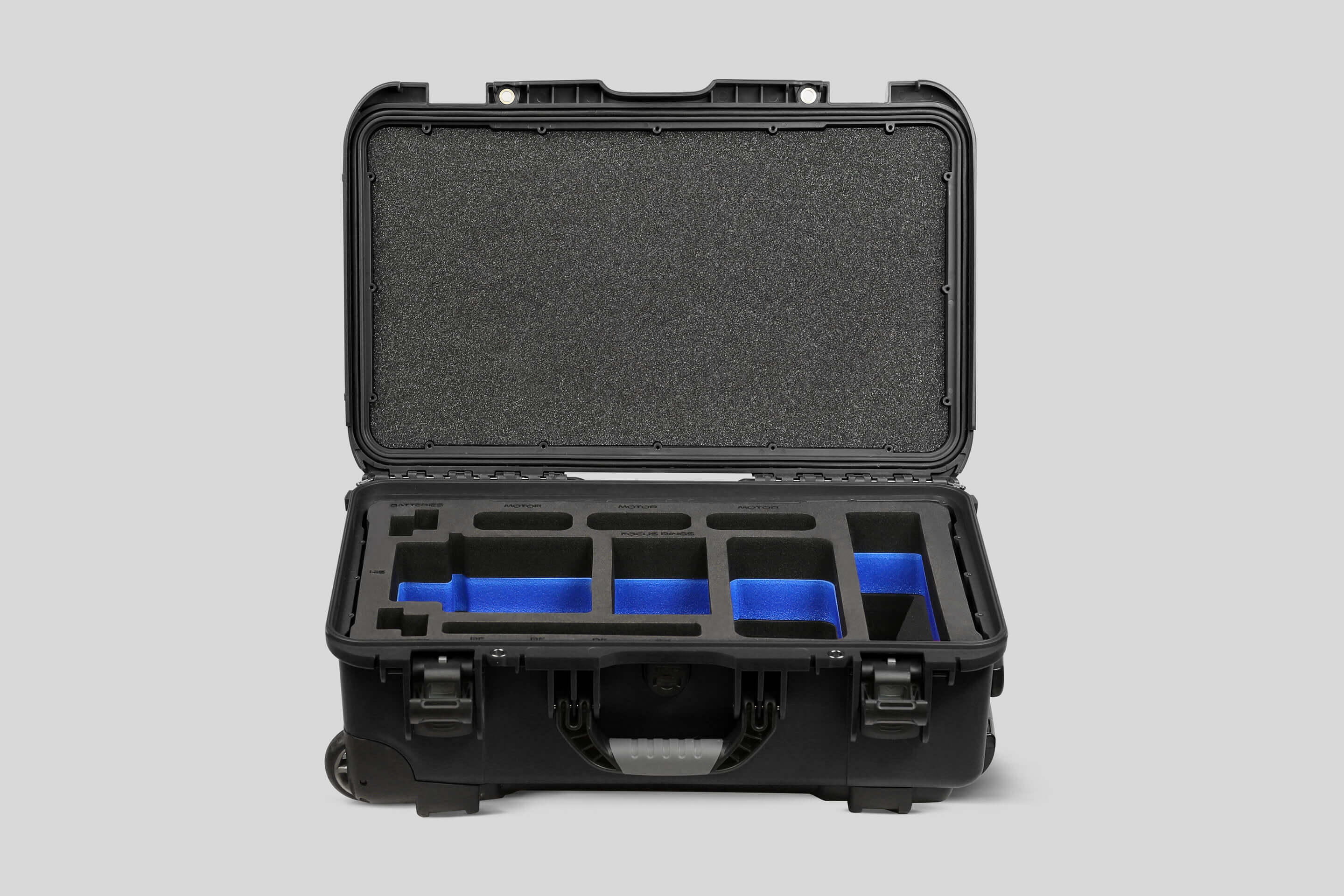 Angle view of Black Color ARRI HI-5 Carry-On Case with Blue Layer Custom Foam Insert