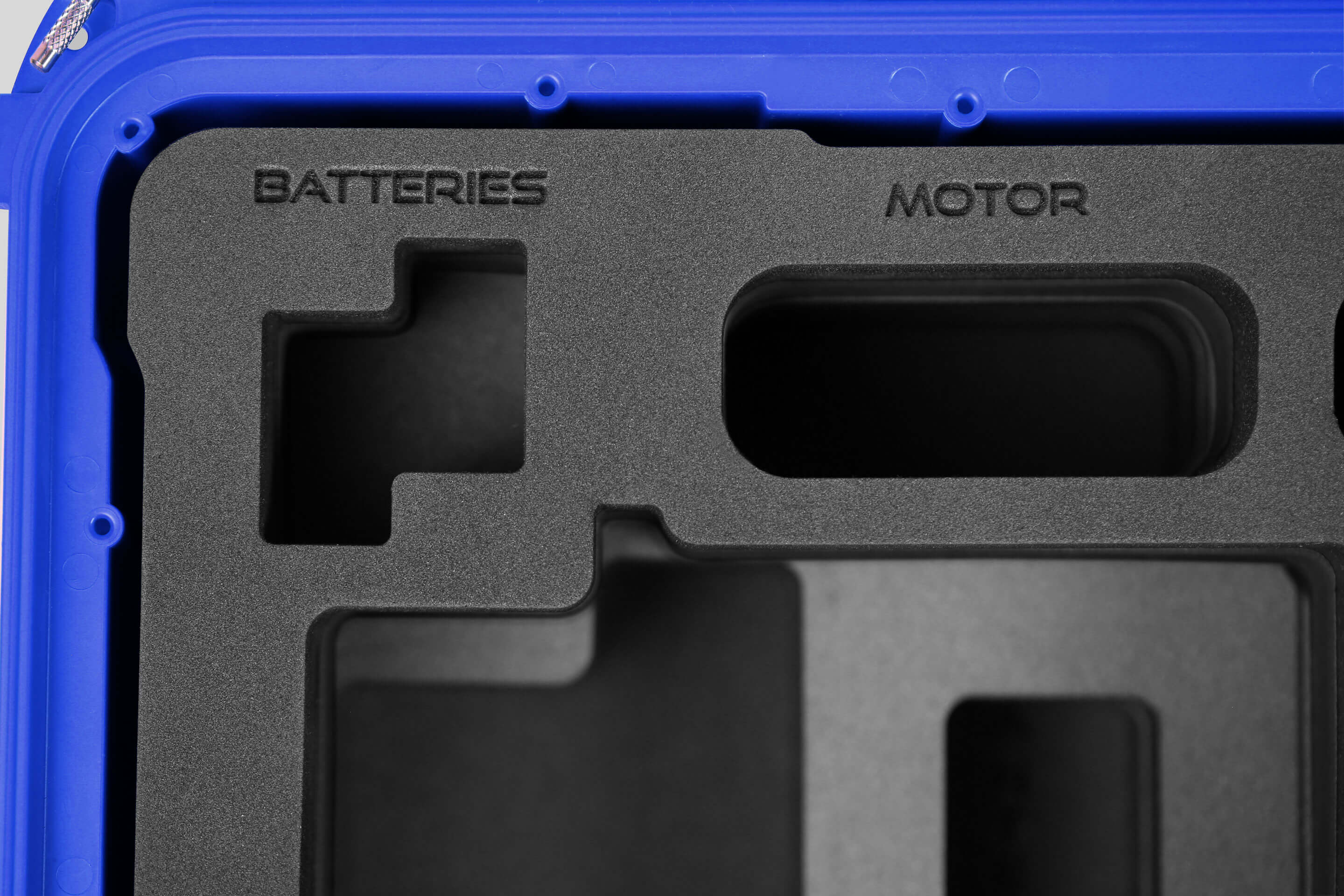 Close-up view 2 of Foama Blue Color Carry-on case and Custom Foam Insert with Blue Layer for ARRI HI-5 or ARRI HI-5 SX