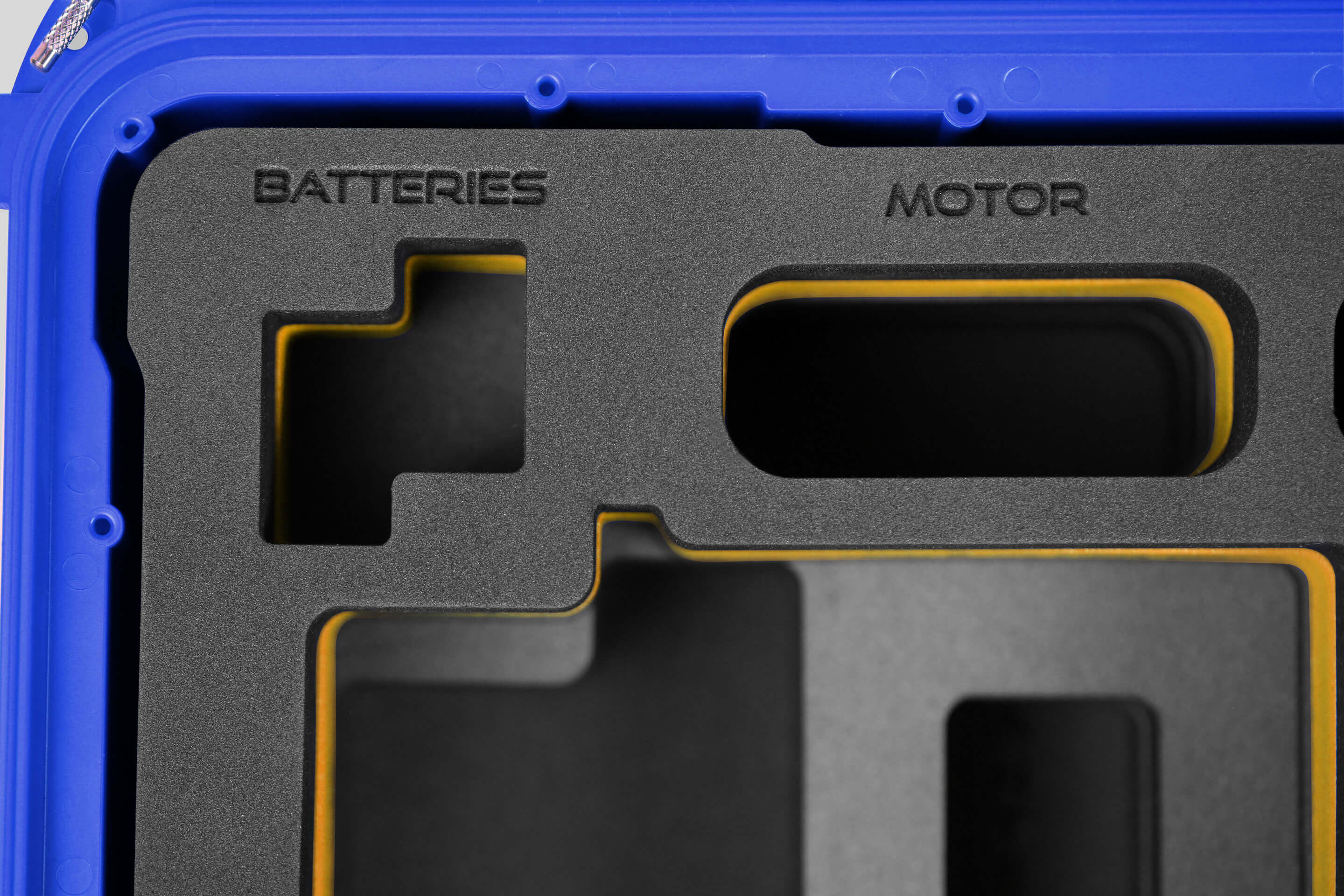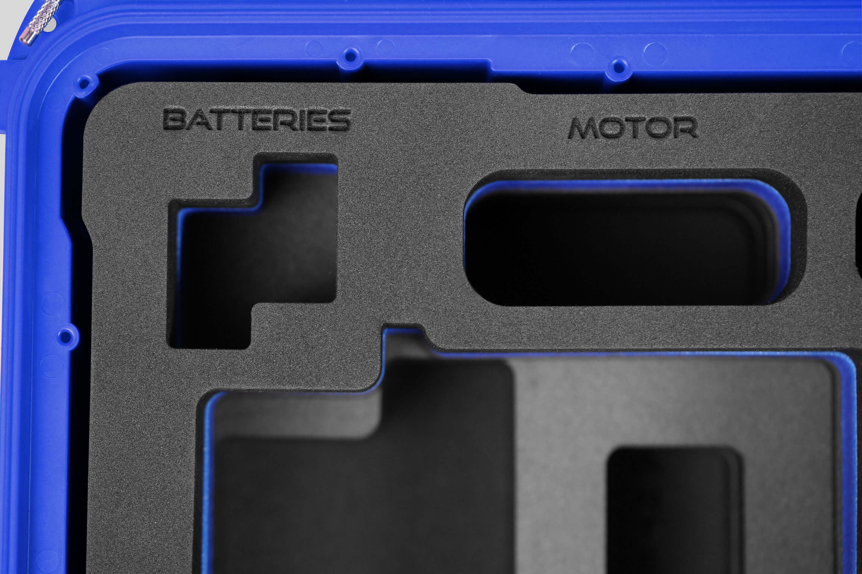 Close-up view 1 of Foama Blue Color Carry-on case and Custom Foam Insert with Blue Layer for ARRI HI-5 or ARRI HI-5 SX